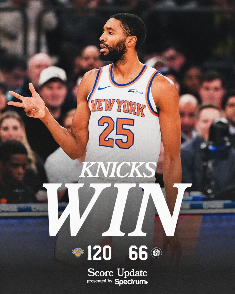 赛后,尼克斯社媒分享本场比赛的赢球海报,并配文: